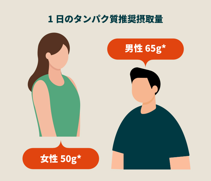 ※18-64歳の1日のタンパク質推奨摂取量。(「たんぱく質の食事摂取基準」 日本人の食事摂取基準(2025年版)、「日本人の食事摂取基準」策定検討会報告書)