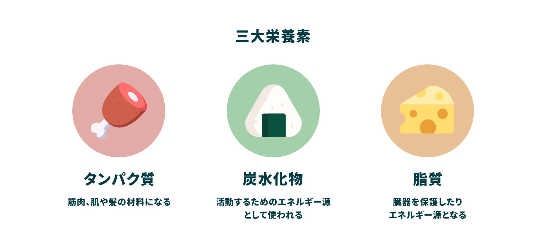 ヒトが日々必要とし、欠かすことができない炭水化物(糖質)・脂質・タンパク質は三大栄養素と呼ばれ、元気なカラダを維持し、日常の様々な活動を支えています。