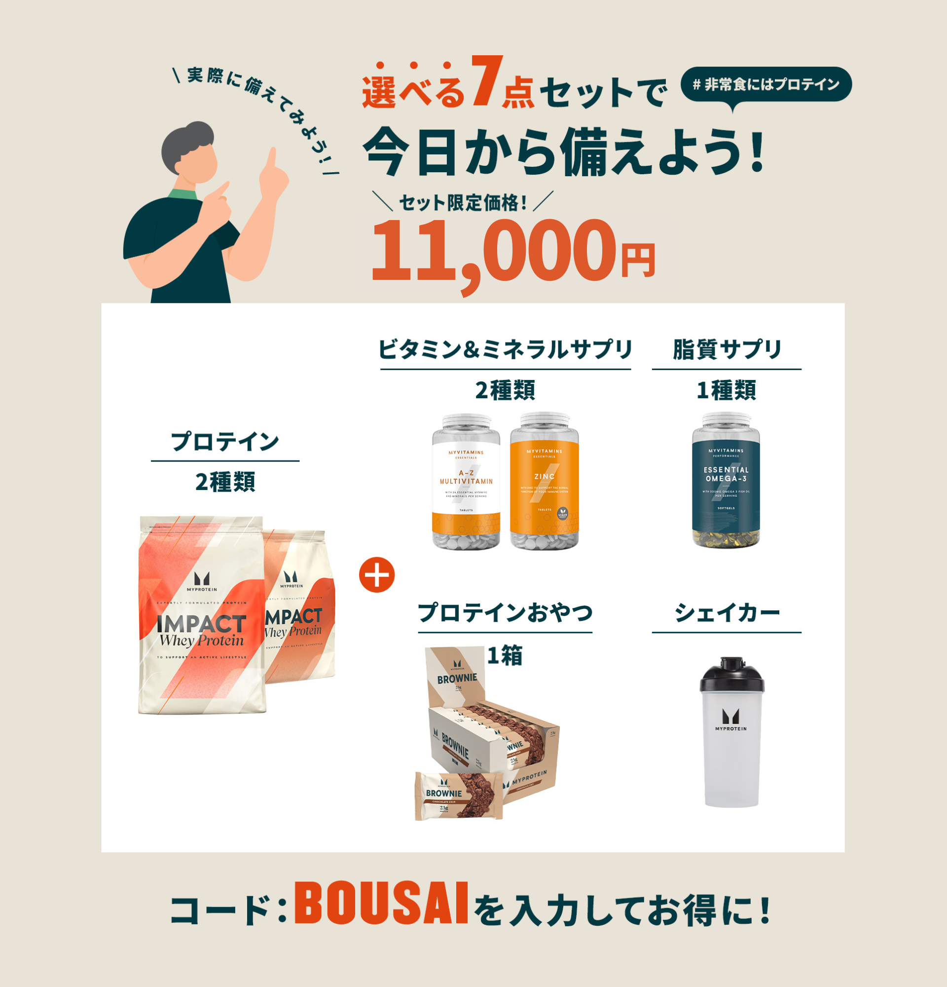 プロテインなどのサプリメントは、本来バランスのとれた食事に+αで栄養摂取をサポートすることを目的とした食品ですが、自然災害や外出制限などで普段どおりの食事(栄養補給)ができない時にも有用です。