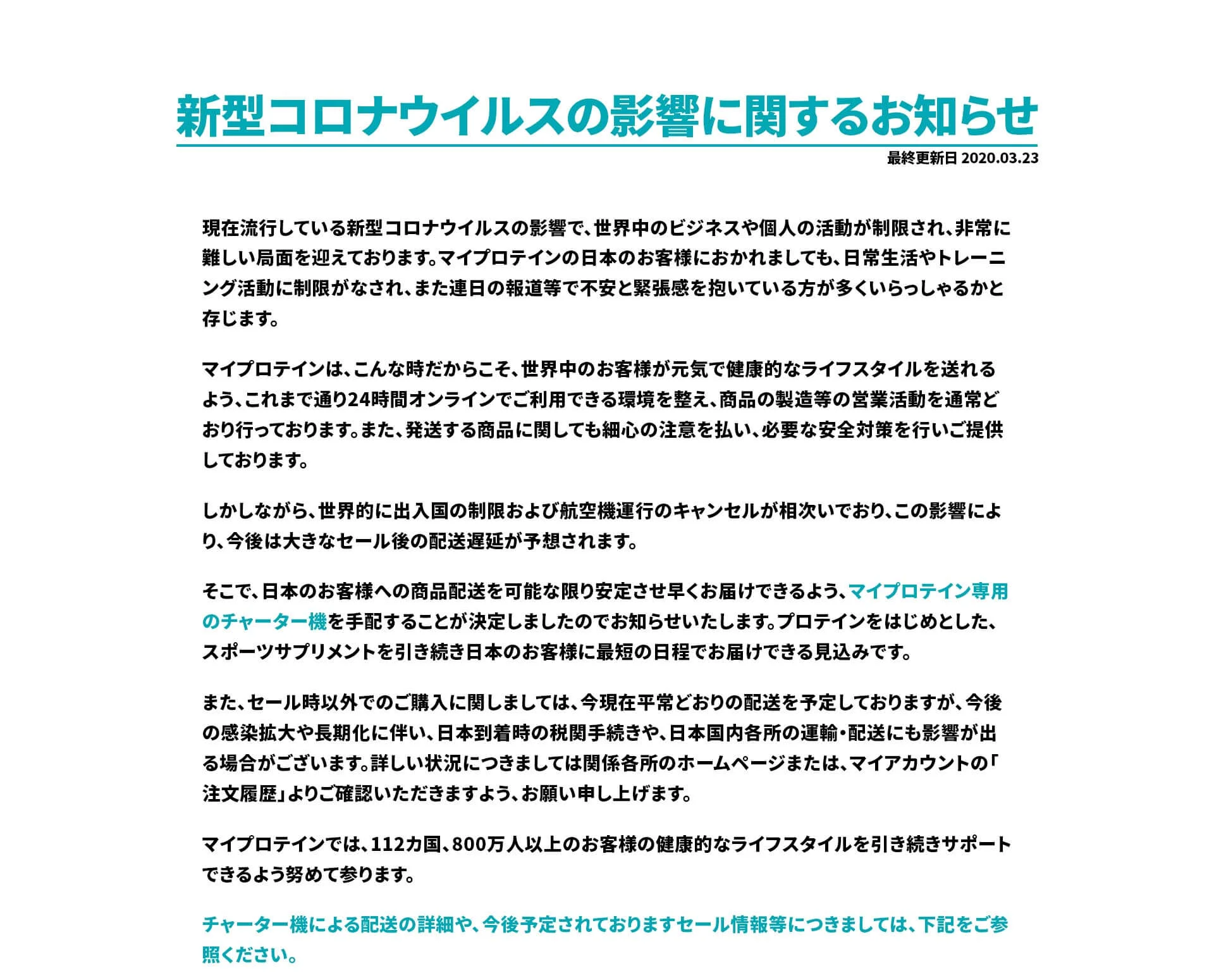 新型コロナウイルス(COVID-19)の脅威に関し、マイプロテインが追加で行っている対策は、現在以下の取り組みがございます。