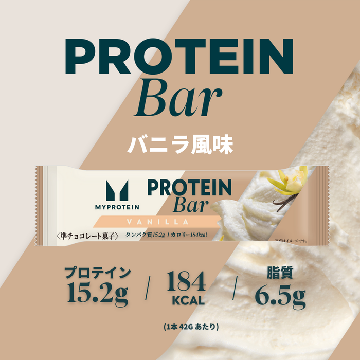 好評発売中の「マイプロテインバー チョコレート味」に続く待望の新フレーバー「バニラ風味」が新登場し、全国のファミリーマートで好評発売中!
