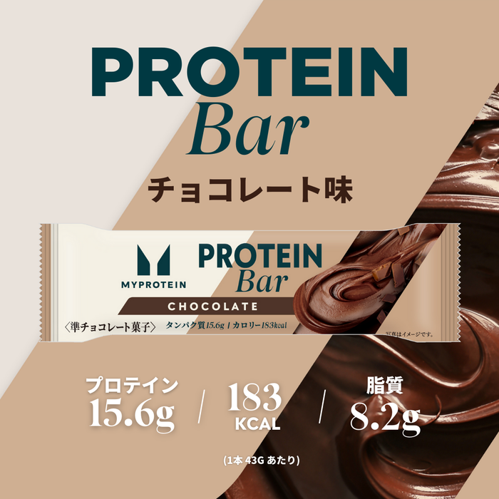 控えめな甘さとサクサク感がおいしいチョコレート味1本 (43g) あたりでタンパク質15.6g含有