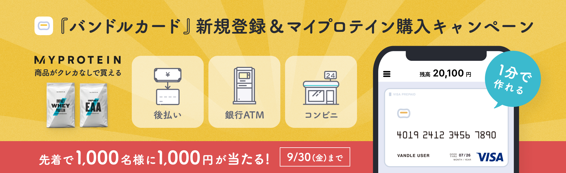バンドルカード新規登録&MYPROTEIN利用で1,000円キャッシュバック!