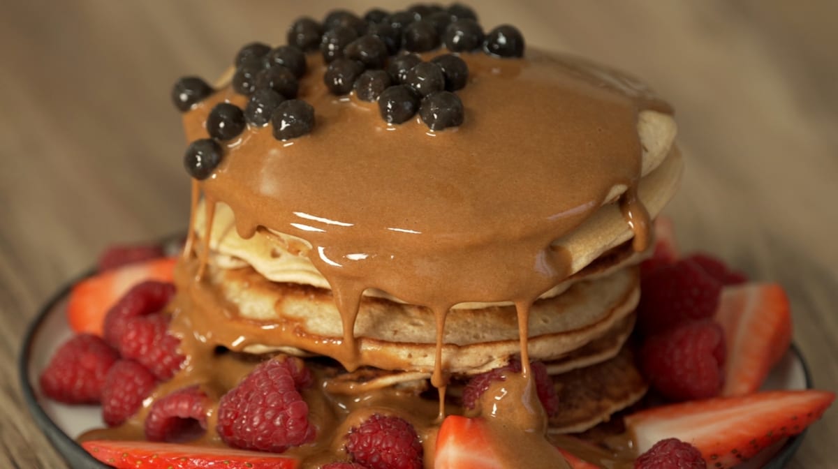 - フライパンを弱火にかけココナッツオイルを適量ひきます。温まったたら、お玉一杯分のパンケーキミックスを流し、弱火のままじっくり約10分程度焼きます。端の部分が少し乾いてきて、表面全体にぷつぷつと小さな泡ができてきたらひっくり返します。