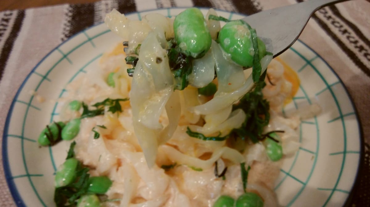 今が旬の枝豆をたっぷり使ったスパゲッティ、ぜひお試しください。